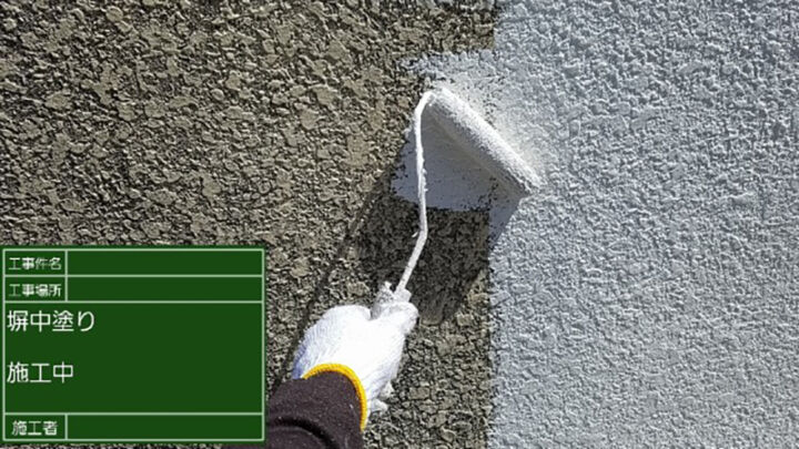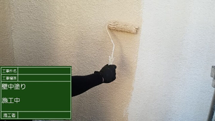中塗りの施工の様子です。