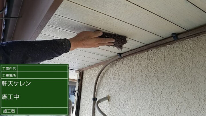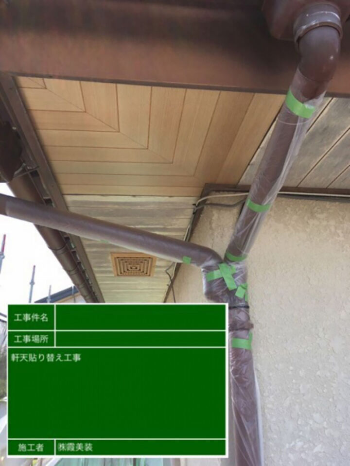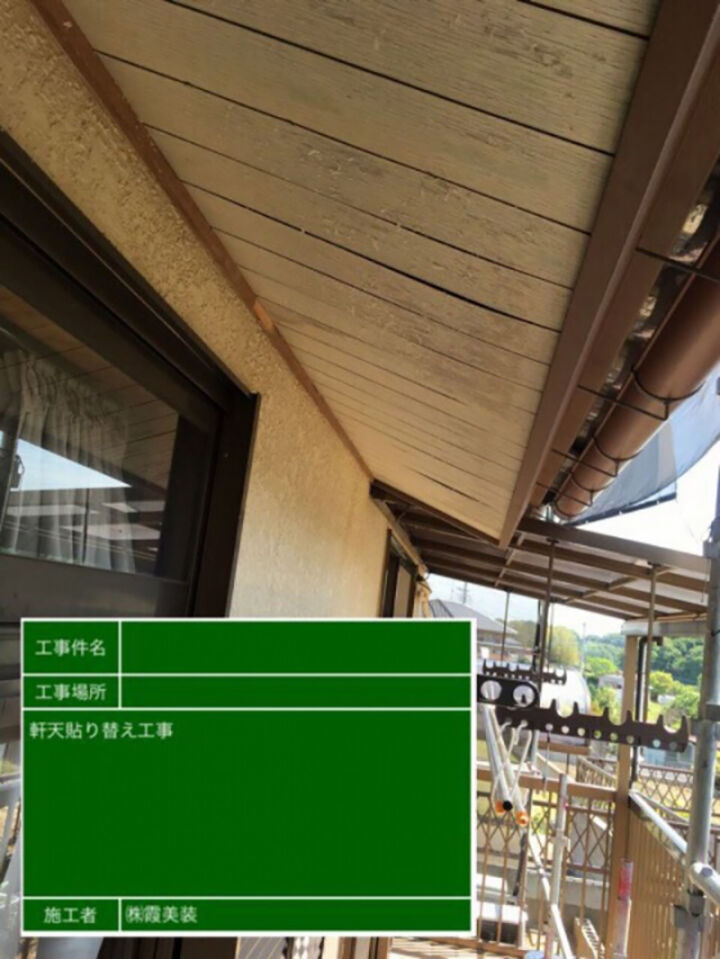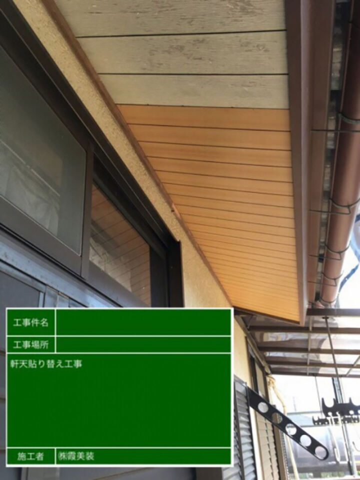 軒天の張替えの様子です。