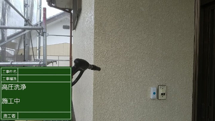 外壁を高圧洗浄機を使いきれいにしていきます。