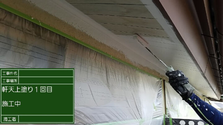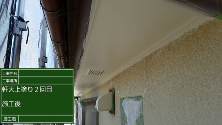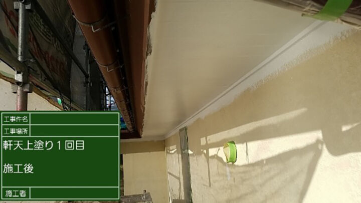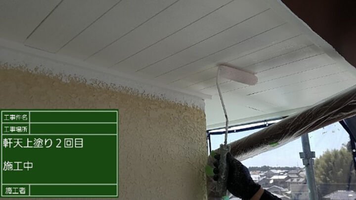 軒天の2回目の上塗りの様子です。