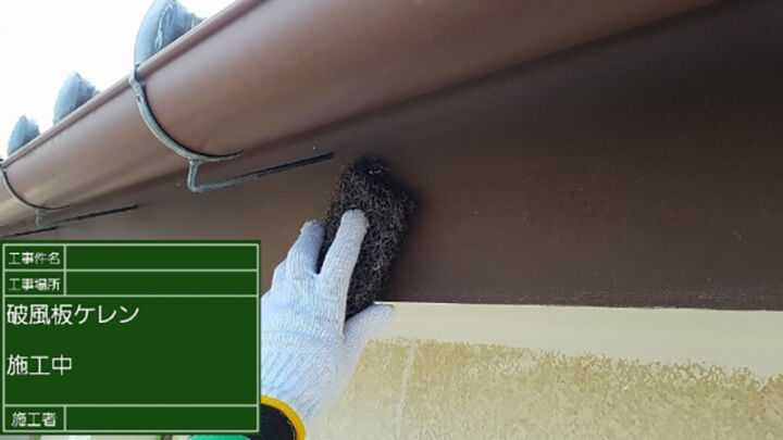 破風板の塗装の前に下処理を行いました。
