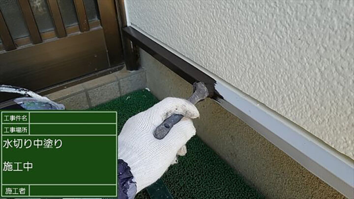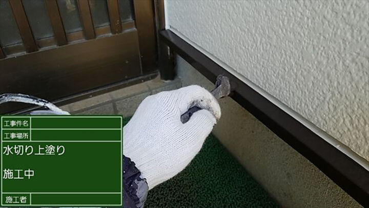 外壁の下の部分(水切り)に使用した塗料は、雨戸・破風・樋と同じものです。