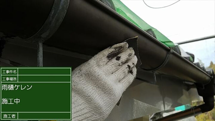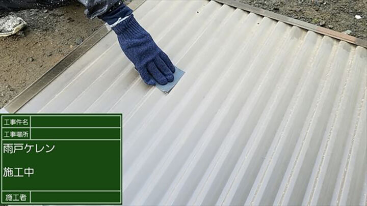 塩ビなので塗料の密着を良くする為にケレンで下地処理が必要となります。