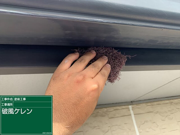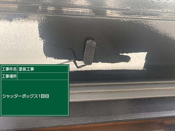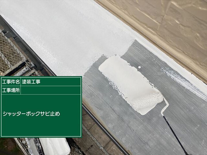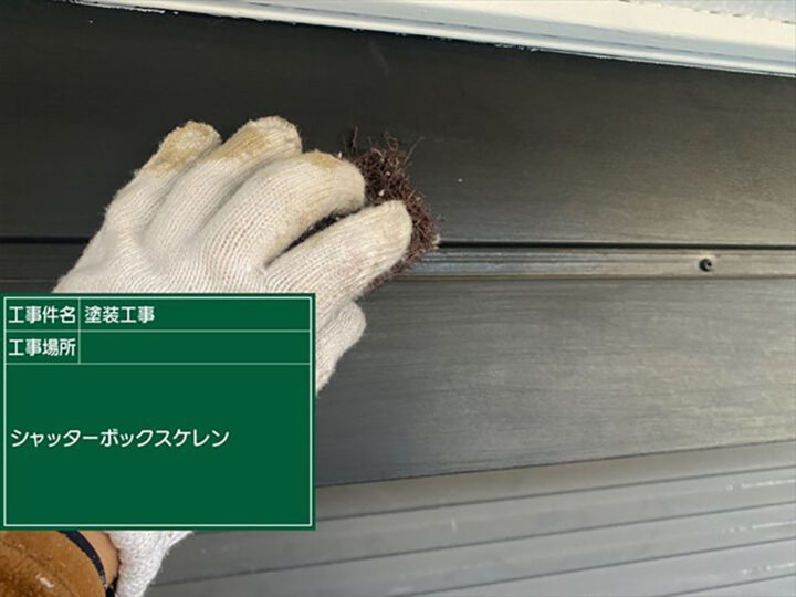 シャッターボックスのケレンをおこないます。シャッターボックスは金属なので、サビ止めを塗ります。