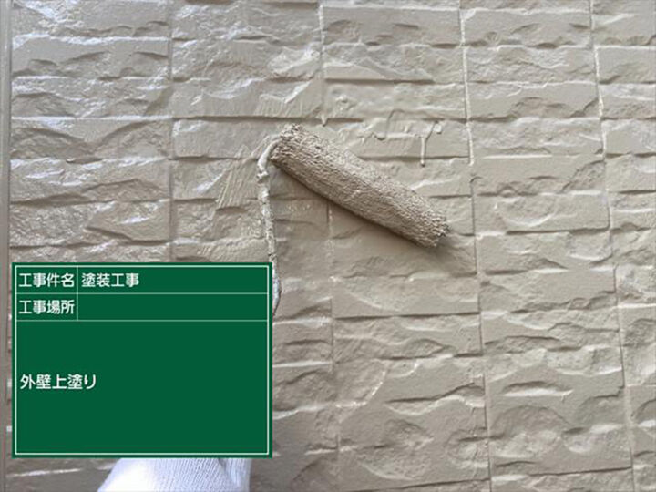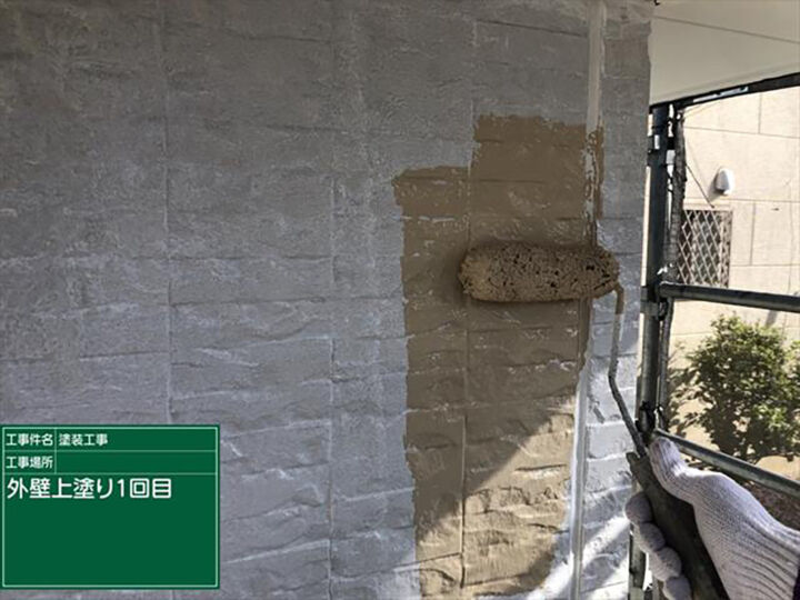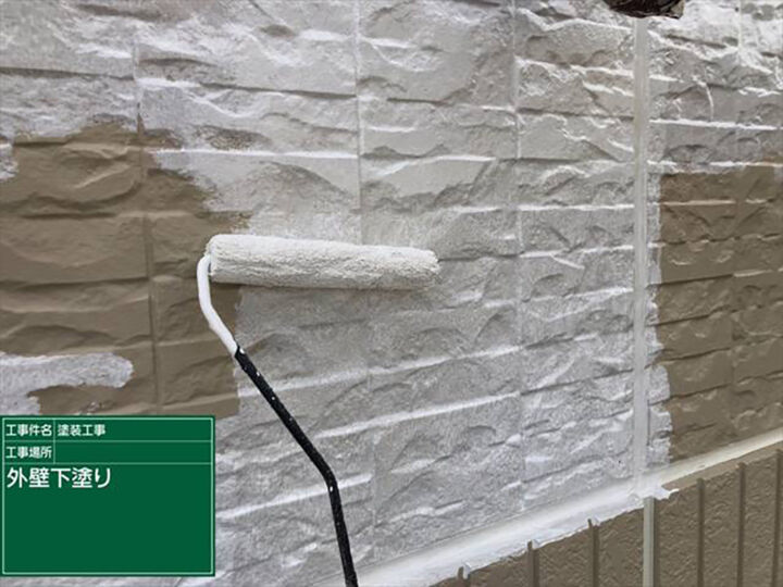 パッチテストをおこなったプレミアムSSシーラープライマーを下塗りとして使用します。ローラーを使用し、上下左右に動かし、塗りむらがないように作業をおこないます。