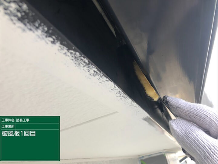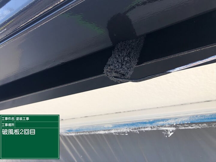 破風板(はふいた)もケレンをおこない、2回フッ素UVコート溶剤を塗り重ねました。フッ素UVコート溶剤の特徴のツヤが出ています。