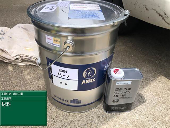 上塗りには、超低汚染リファインを使います。超低汚染リファインは、親水性が高く、汚れがついても雨と共に流れ落ち、キレイな状態が長く続く特徴があります。