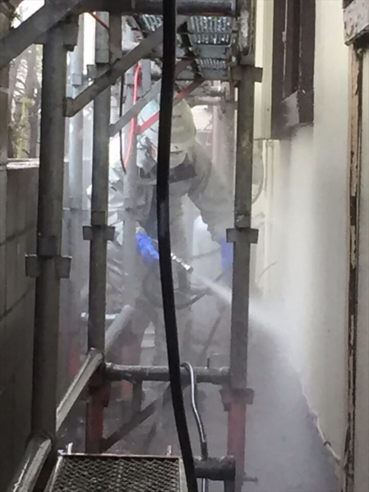 業務用の高圧洗浄機を使って長年の汚れを落としていきます。