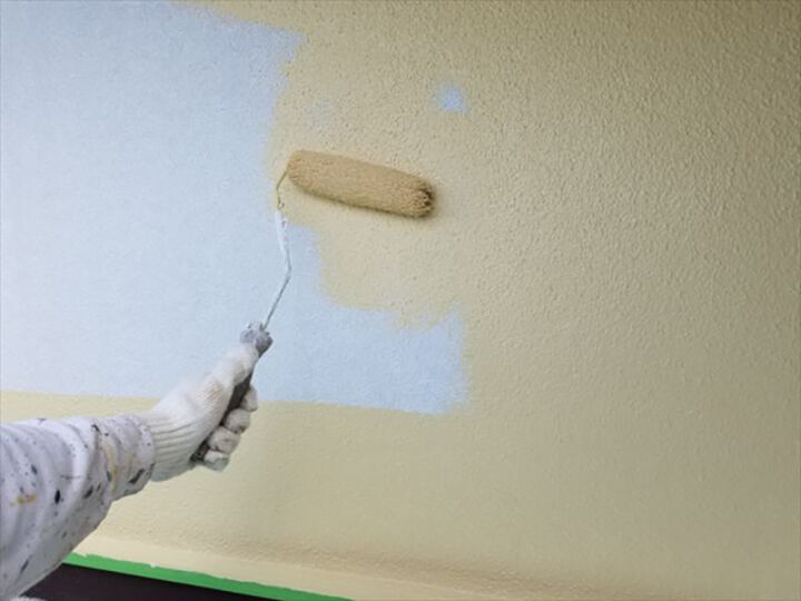 モルタル外壁塗装の上塗りになります。中塗り同様、塗布量をしっかり守り施工いたしております。