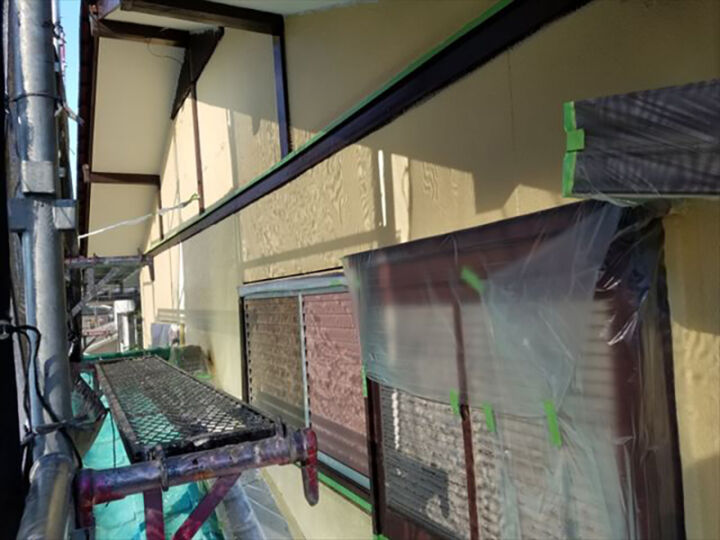 引き続きモルタル外壁の塗装です。下塗りが終わったら中塗りです。