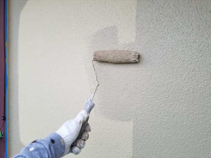 モルタル外壁の補修が終わりましたら塗装作業に入ります。 こちらは外壁塗装の下塗り作業です。 下塗りは下地材によって材料を変えます。調査の際に適切な下塗りを選んでご提案をしています。 !ポイント! 下塗りは隠れてしまう部分なので、手を抜かずしっかり施工しているかが、重要です。 街の外壁塗装やさん つくば土浦店では、上塗りと同じように仕上げるつもりで、職人が手塗りをしております。