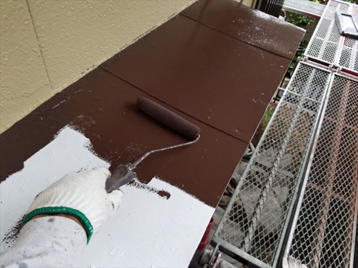 目あらし(ケレン)作業が終わりましたら、さび止めを施工させていただきました。 さび止めは塗料の食いつきを良くするだけじゃなくサビ止め自体が下地をさびから守る役目もあります。