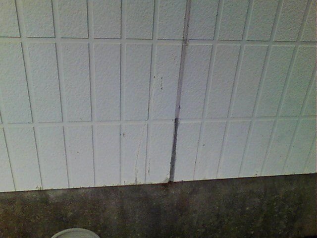 アパートの現地調査、外壁ボードとボードの目地を埋めているシーリングの状態です。