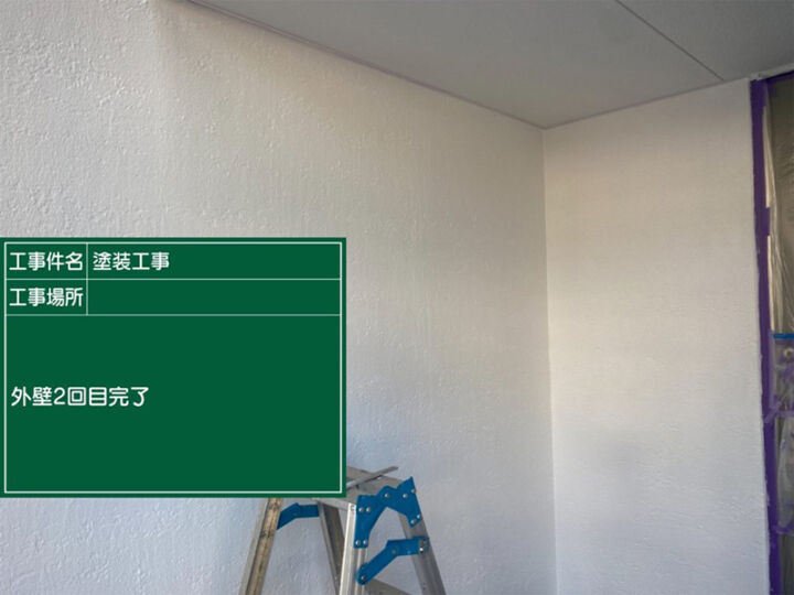 モルタル外壁塗装、2回目の上塗りの様子です。
