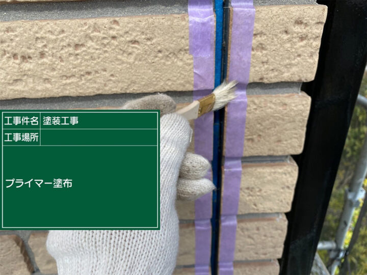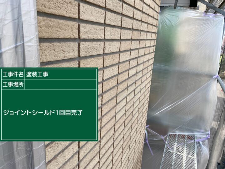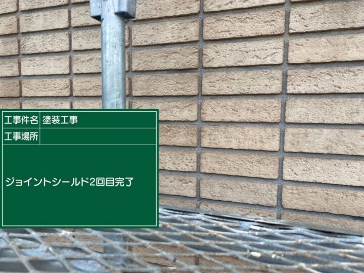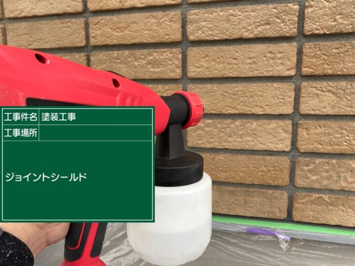 タイルは一般的に塗装不要です。タイル外壁の劣化要因となる目地部への水の侵入を防ぐ為、ジョイントシールドという吸水防止材を塗布します。吹き付けでの施工となります。