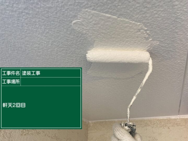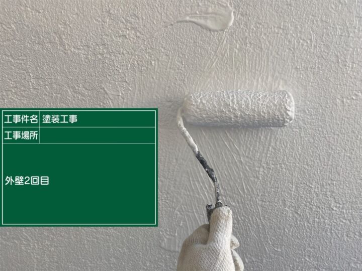 2回目の上塗りの様子です。補修箇所もきれいに仕上がりました。