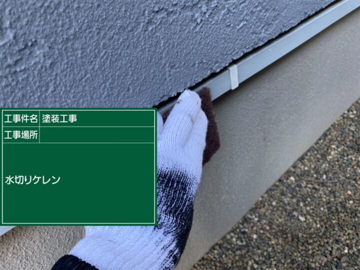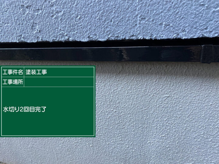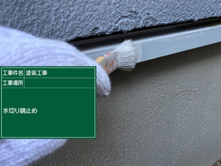 フッ素UVコートで上塗りを行います。水切りは細長い部材ですので、ハケで作業していきます。