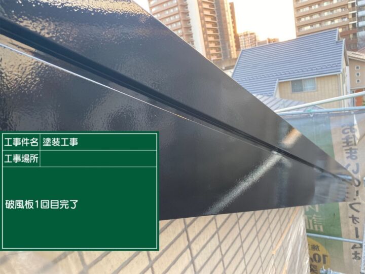 補修後、同様に塗装していきます。フッ素UVコートした1回目の塗装の様子です。