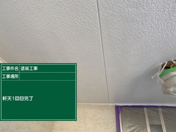軒天に適した、防カビ・防藻効果の高いマルチエースを使用して塗装していきます。