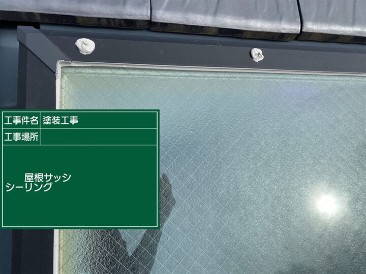 天窓のビス部分とサッシのガラスとの取り合い部分にシーリングを施しました。