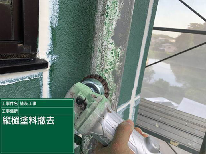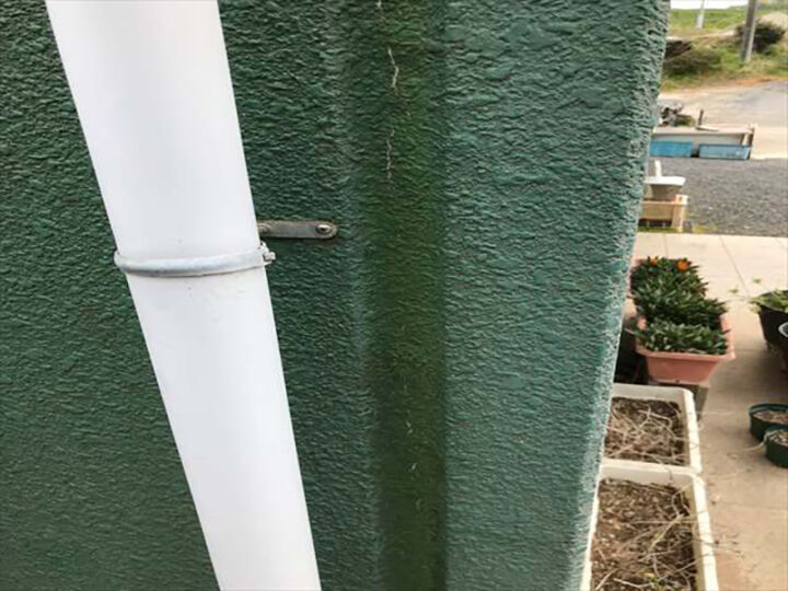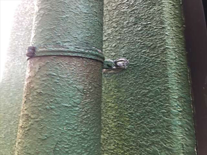 古い塗膜でガビガビになった雨樋をケレンして塗装
