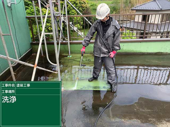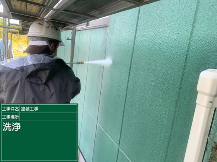 施工開始!! 外壁塗装に入る前に高圧洗浄で汚れを落とす