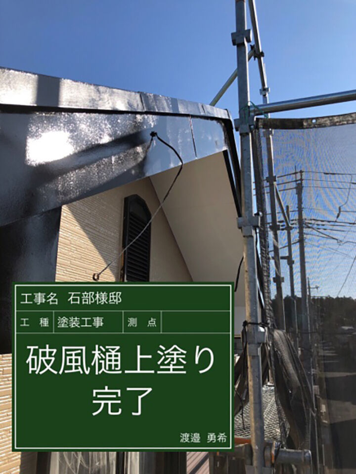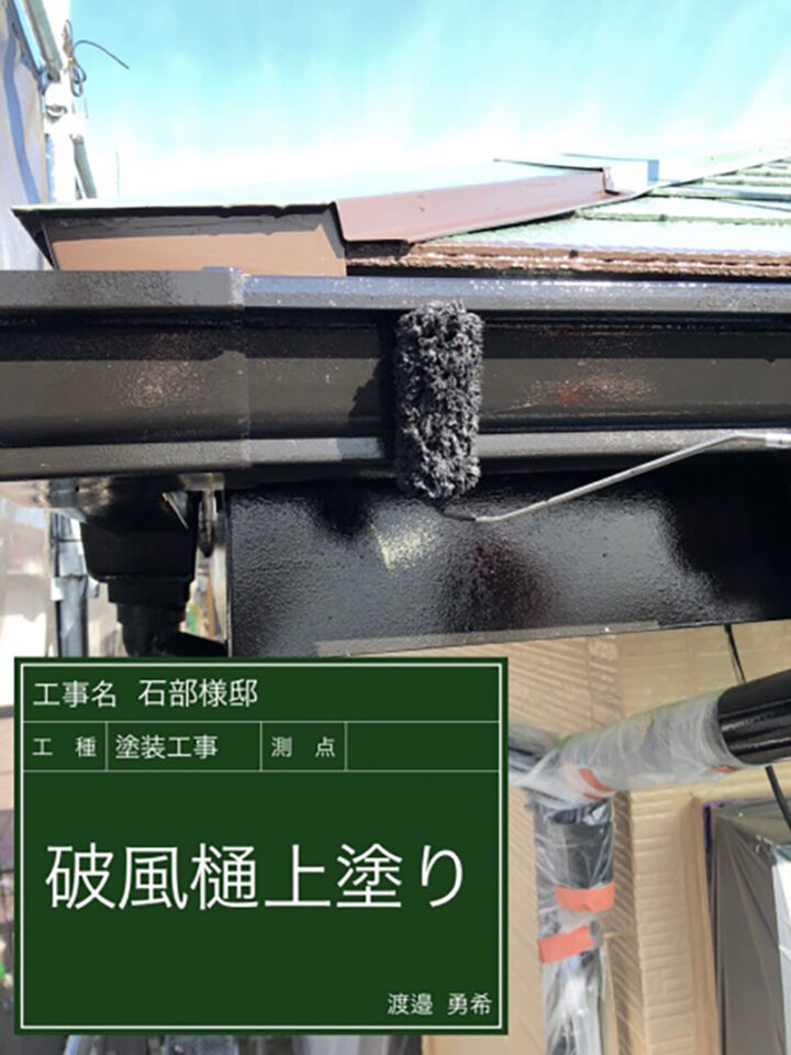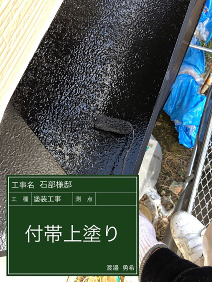 屋根まわりの細長い部材なので、塗り継ぎしたときの境目がわからないようにします。
