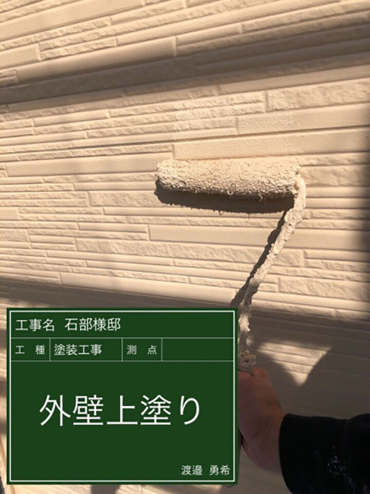 上塗りには、アクリル塗料の低価格とシリコン樹脂塗料の高耐久性のいいとこ取りの『シリコンフレックスJY』を使用して塗装を行いました。