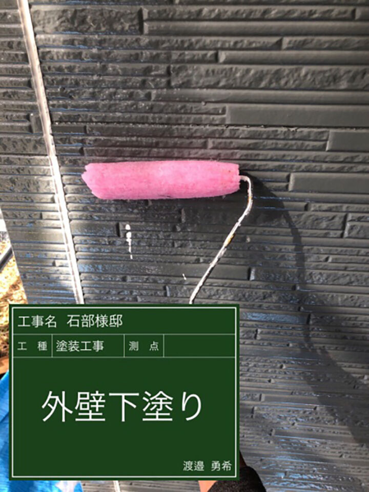 下塗り剤を浸透させ、ゆがみに強くひび割れしにくい外壁にします。
