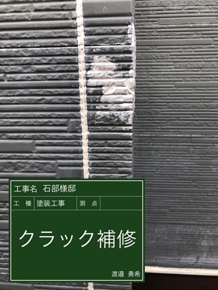 外壁にできたクラックにも同じシーリング材を充填し、ひび割れを埋めていきました。