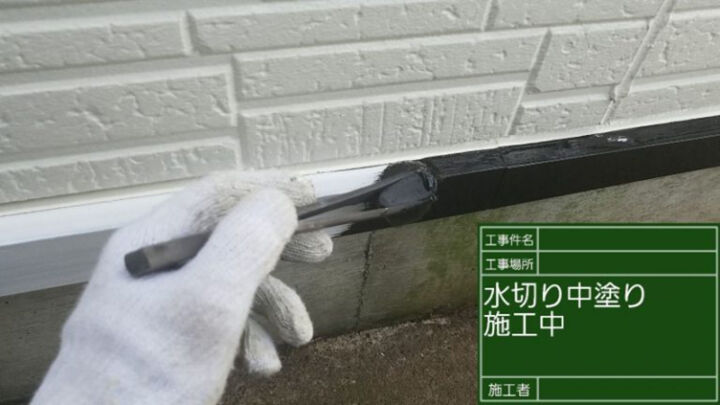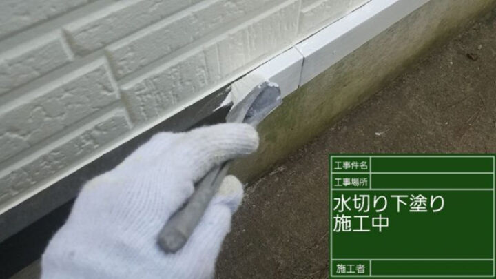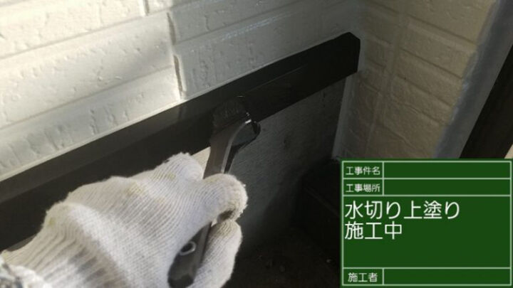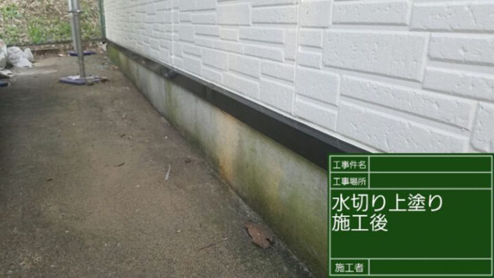 続いては、外壁と基礎土台の境目に設置されている水切を塗り替えていきます。