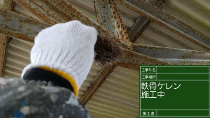 鉄骨部分に赤サビが浮いているのがわかります。
