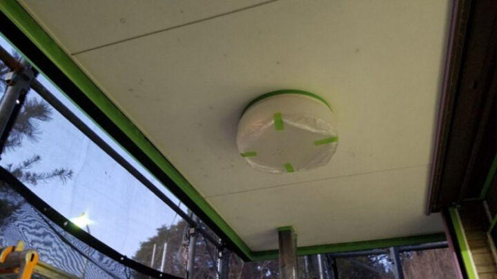 屋根まわりは屋根本体とは別の色に塗るので養生シートで養生しておきます。
