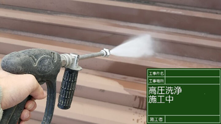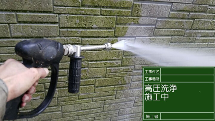 こちらも塗装工事の下準備である高圧洗浄です。