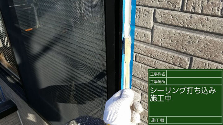 窓枠は古いシーリング材を撤去せずに打ち増しで対応します。