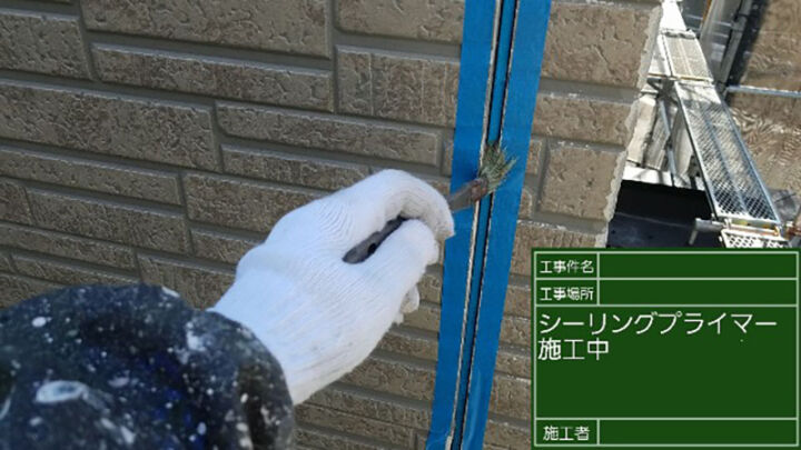 目地にまずプライマーを塗っていきます。