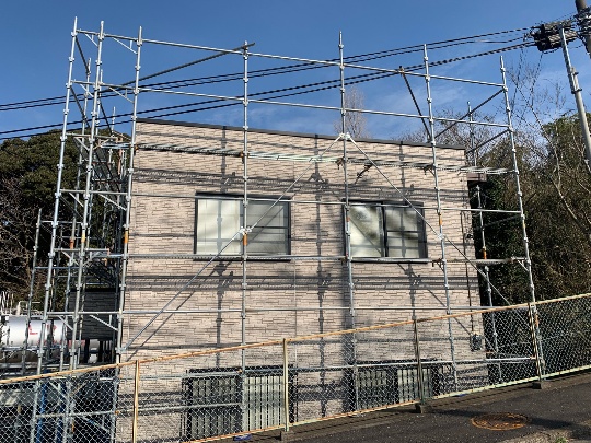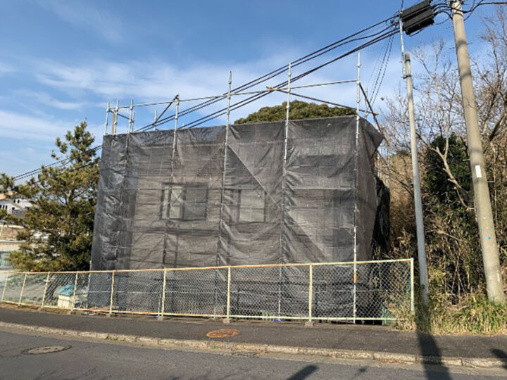 工事を行う前に足場を設置します。