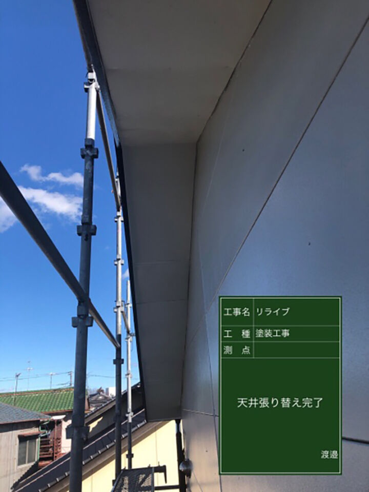 ボロボロだった軒天は新たにベニヤ材の軒天を張り替えました。