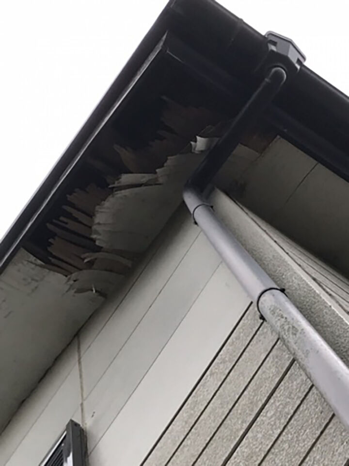 破風板も塗膜が剥げて木部が見えてしまっています。
