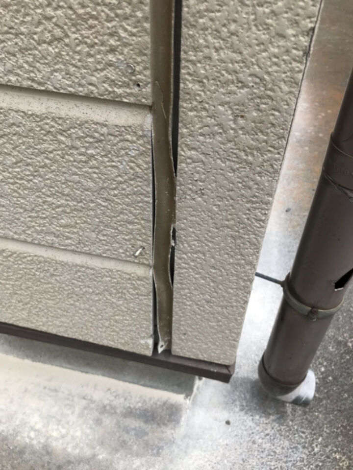 シーリング剤が剥がれてサイディングボードが浮き上がっています。