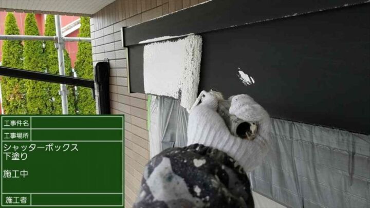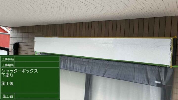 シャッターボックスの部分です。よく見ると、塗膜の剥がれやサビのようなものが確認できます。