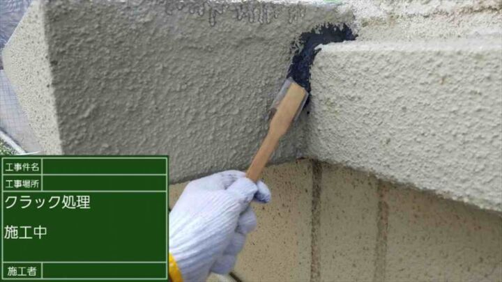 クラック(ひび割れ)の補修の様子です。