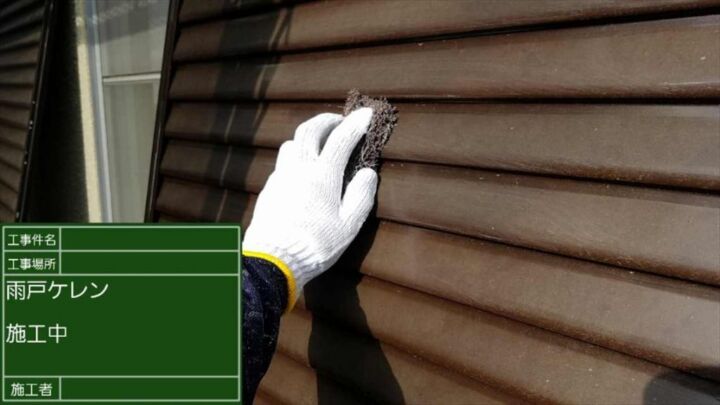 雨戸は金属製だったので、まず古い塗膜とサビを落とすためにケレンと呼ばれる下処理を行います。