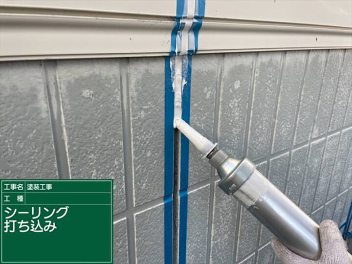 ④打ち込んだシーリングを押さえる(充填したシーリングを均す)