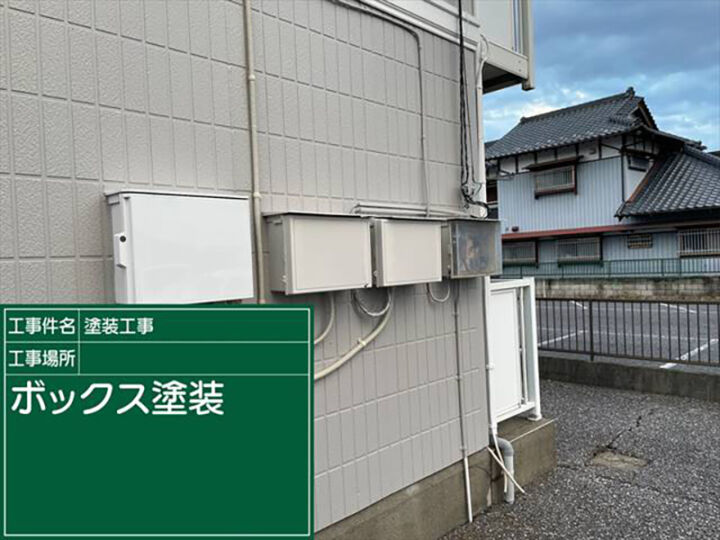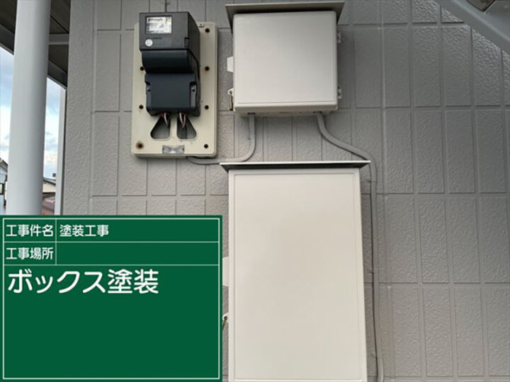 各種メーターボックスの塗装を素地に合わせておこないました。ボックスがサビてしまうと雨が流れる度に、汚れが外壁をついたい、茶色いサビ汚れが付着してしまいます。ボックスをサビさせないことが外壁の美観の維持につながるので、細かい部分も手を抜きません!