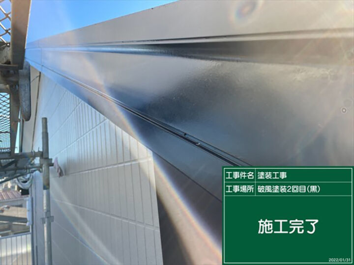 サビを防ぎながら、紫外線の劣化に強い塗膜が完成しました。ツヤがでてキレイに塗装ができています。この状態を維持できる塗料を使用しています。