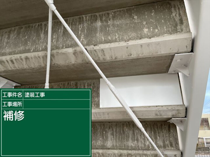 どちらも2回の塗装をおこない、施工が完了したようすです。共有通路の鼻隠し部分の写真です。