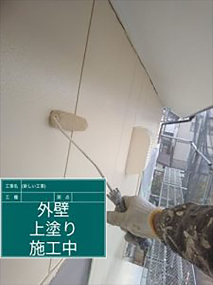 紫外線や風雨に強い高耐候性の塗料で中塗りと上塗りをおこないます。劣化に強いということは、キレイな状態を長く維持することができるということです。