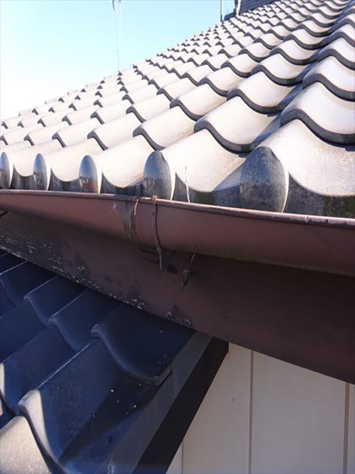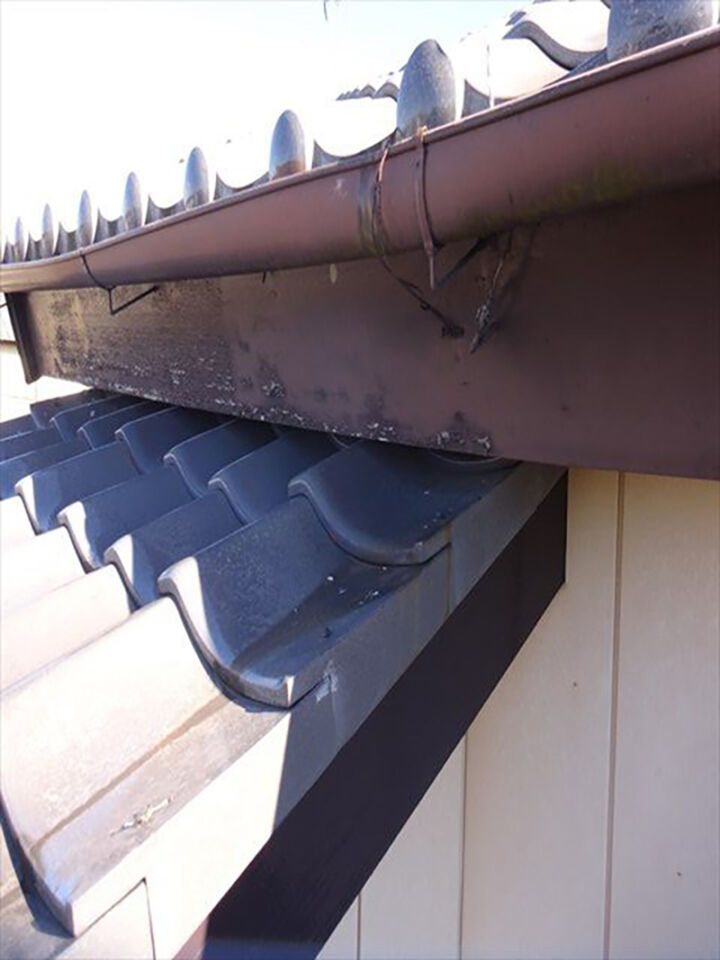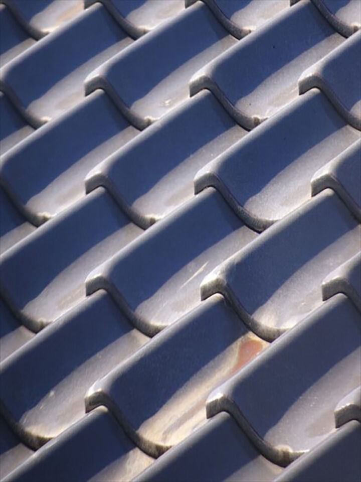 屋根のようすを確認します。瓦屋根なので塗装の必要はありませんが、瓦に割れやズレがないか確認していきます。汚れがありますが、特に問題はありませんでした。