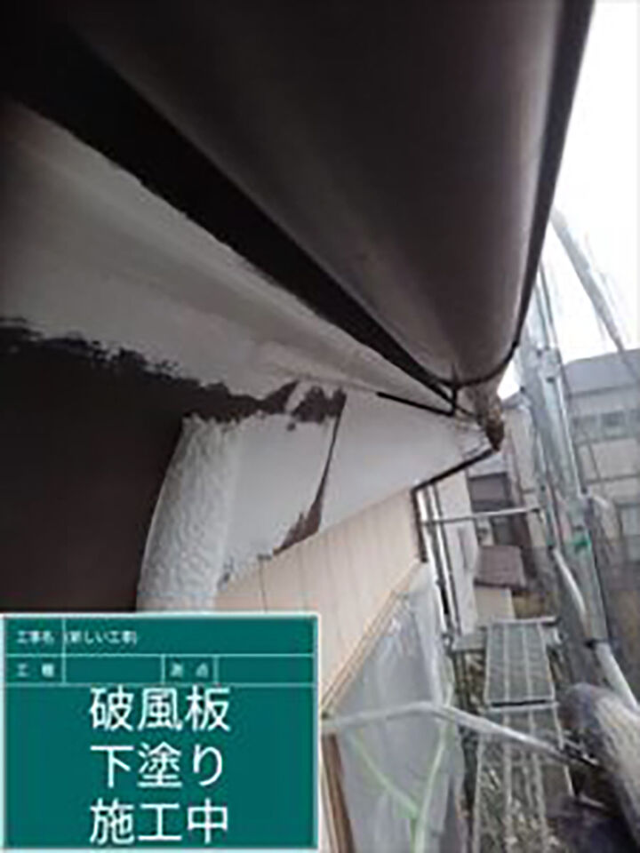 破風板と鼻隠しの塗装をおこないました。素地に合わせ、下塗りをおこない、紫外線に強い塗料を選び中塗り、上塗りをおこないました。
